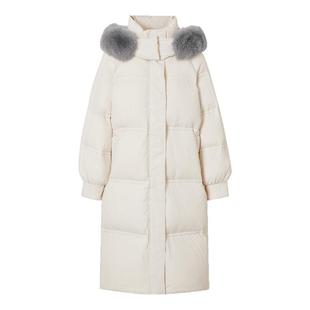 红袖冬季新款女装插肩袖双拉链狐狸毛立领长羽绒