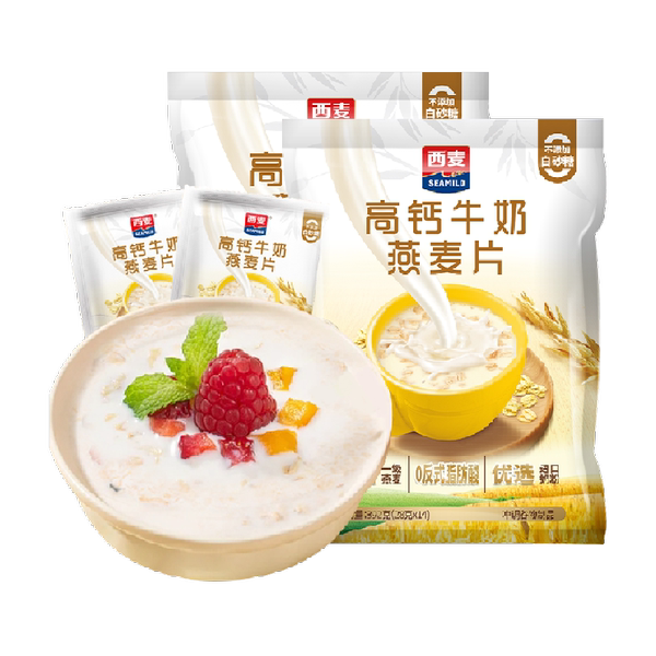 西麦高钙牛奶燕麦片392g*2袋营养早餐即食冲饮独立小包装