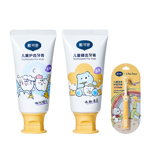 针对不同年龄段宝宝口腔需求,戴可思儿童牙膏贴心推出含氟与无氟系列:1-3岁选用无氟配方,温和安全,适合乳牙护理;3-12岁换牙期采用科学含氟配方,帮助强健新萌牙齿。产品专为儿童设计,低泡易漱净,草莓等水果口味提升刷牙兴趣。成分温和不刺激,不含SLS、人工色素及防腐剂,呵护孩子娇嫩口腔,培养良好护齿习惯。
