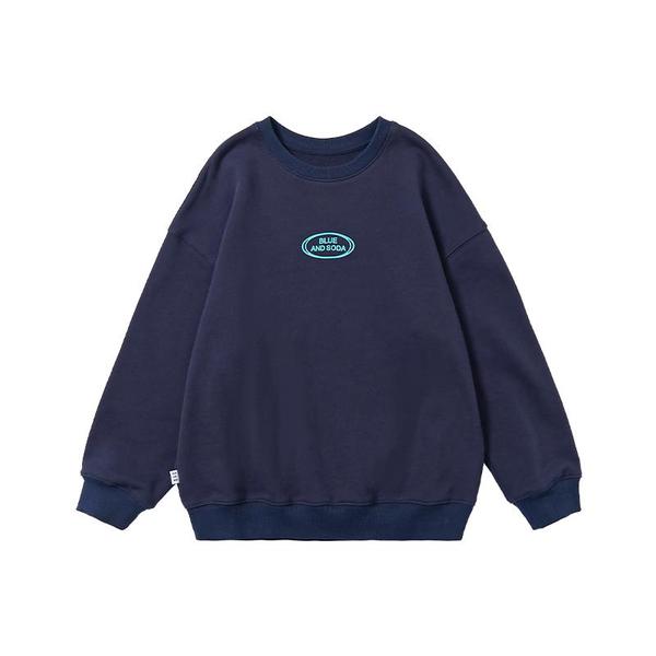 蓝汽水圆领印花上衣全棉宽松卫衣