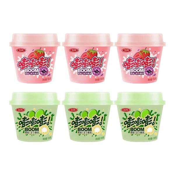 三元嘭嘭嘭爆珠酸奶130g*6杯装青提芝士草莓黑米酸牛奶风味发酵乳
