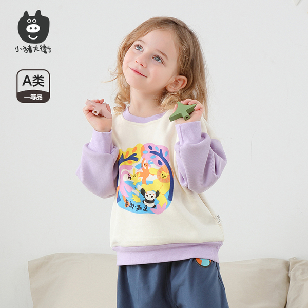 【19.9/件,多款任选】小猪大卫儿童秋冬加绒卫衣裤子,圆领棒球服男女宝宝长袖外套加绒裤