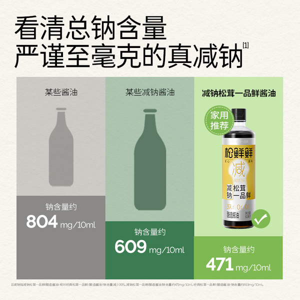 松鲜鲜减钠松茸一品鲜酿造酱油500ml红烧生抽炒菜凉拌调味料