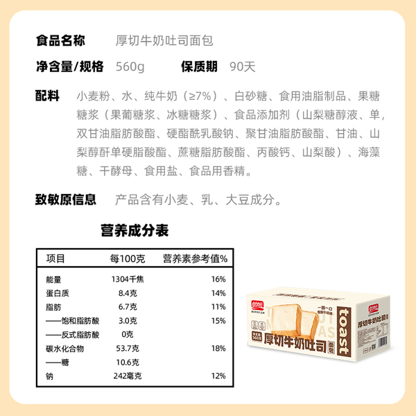 盼盼水牛乳厚切早餐面包片