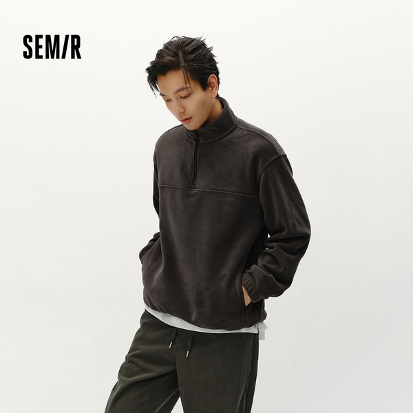 森马卫衣男摇粒绒冬季半开襟绣花上衣
