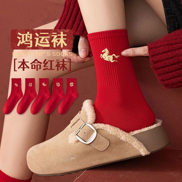 【5双中筒袜】新年春节红袜子