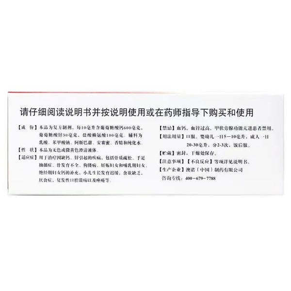 澳诺葡萄糖酸钙锌口服液10ml*24支儿童成人补钙