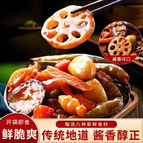 鲁小胖酱香八宝菜,多种食材匠心腌制,黄瓜辣椒地环等搭配,酱香浓郁脆嫩爽口,咸香适中开胃解腻,配粥拌饭拌面都超搭,日常佐餐下饭神器,开袋即食超方便!