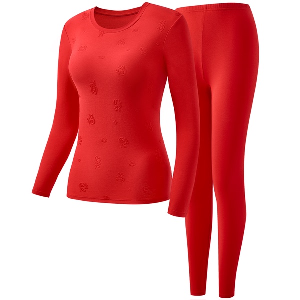 松山棉店红福本命年红色保暖内衣套装情侣秋衣秋裤新婚马年礼物