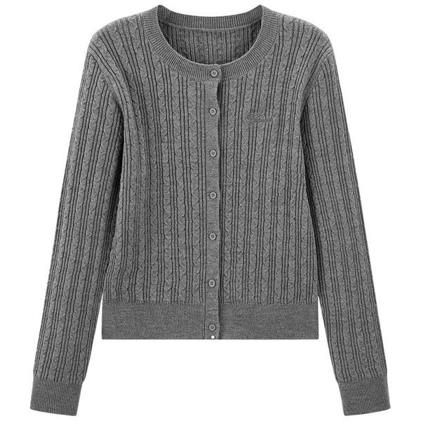 太平鸟 miu绞花圆领针织衫羊毛混纺女士品质通勤毛衣慵懒开衫红色