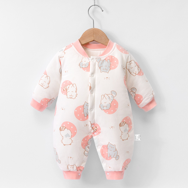 宝宝保暖连体衣秋冬款新生儿夹棉哈衣爬服男女婴幼儿加厚睡衣冬装