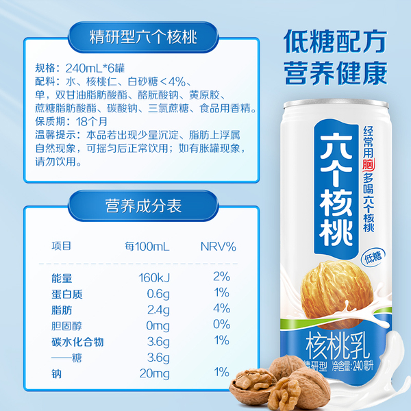 【超级年货节】六个核桃到手共51罐240ml*15罐*3箱+精研240ml*6罐