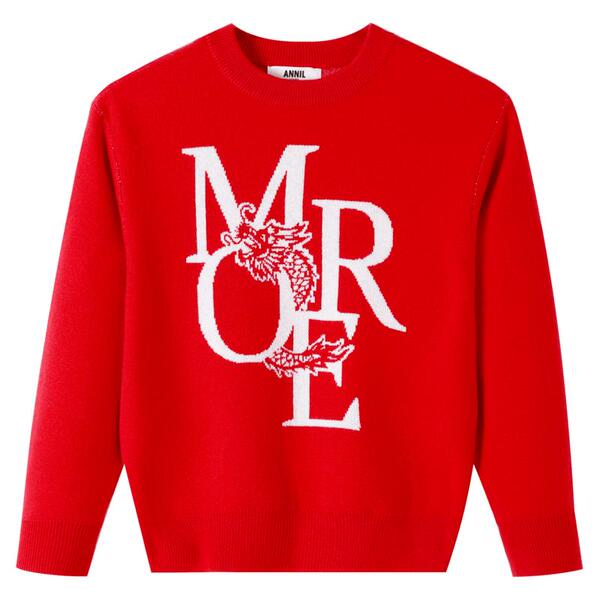 安奈儿童装女童毛衣针织衫秋红色时尚提花圆领