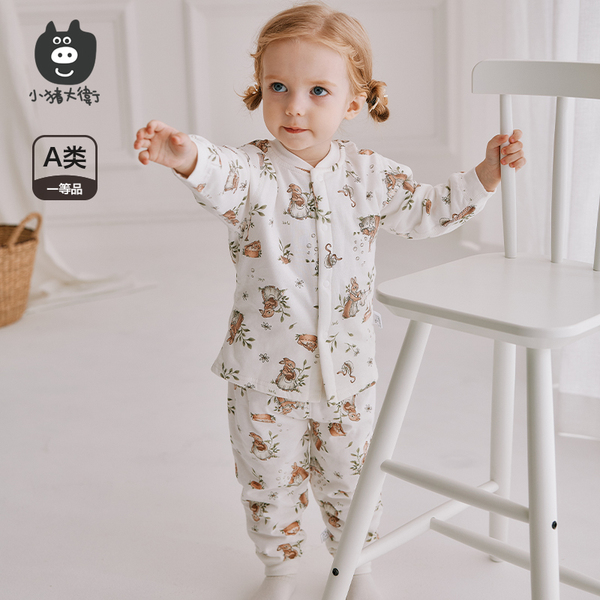 小猪大卫儿童高腰套装秋冬男女宝宝居家内衣套纯棉上衣裤子夹棉套