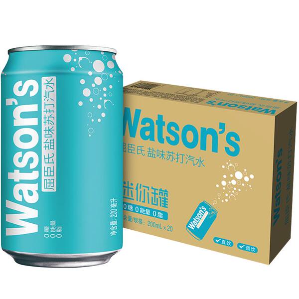 屈臣氏盐味无糖苏打汽水迷你罐0糖0脂0气泡碳酸饮料调饮调酒整箱