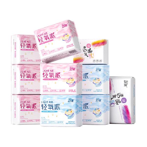 【顺丰包邮】舒莱卫生巾透气派日夜组合10包96片干爽防侧漏姨妈巾