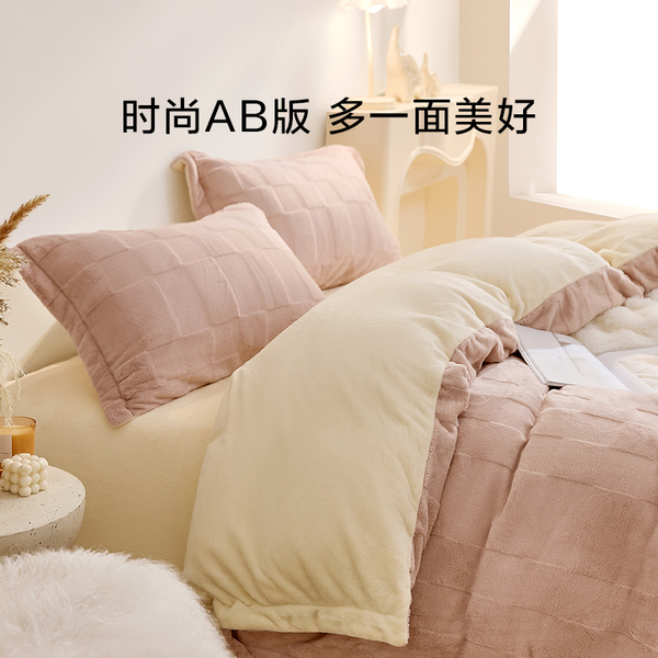 罗莱家纺秋冬新款慕斯绒三四件套暖绒套件被套床单床笠保暖法兰绒