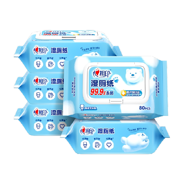 【田栩宁推荐】心相印湿厕纸家庭擦屁屁湿纸巾洁厕巾80片*5包