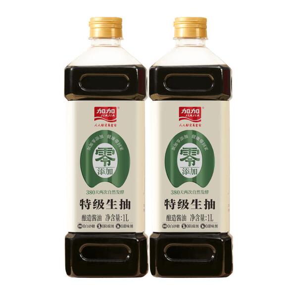 加加零添加特级生抽1L,黄豆酿造无防腐剂,家庭必备调味品!拍2件仅需29.8元,限时秒杀优惠,部分用户可领10元券,口感鲜醇,品质有保障!
