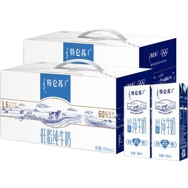【有4元淘礼金+1元淘礼金,百亿补贴到手95元2箱】蒙牛特仑苏低脂纯牛奶250ml*12盒*2箱,营养丰富,口感醇厚,适合日常饮用,低脂健康,全家都爱!