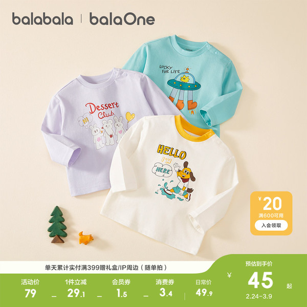 42.9!巴拉巴拉男女童2026春款长袖t恤