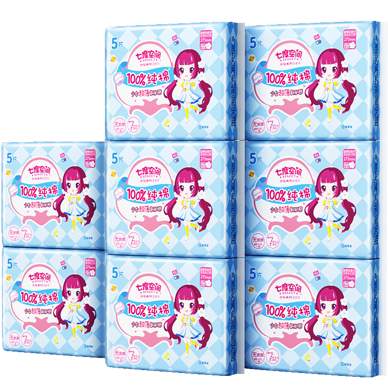 【新国标认证】七度空间卫生巾少女超薄纯棉干爽日用姨妈巾245mm
