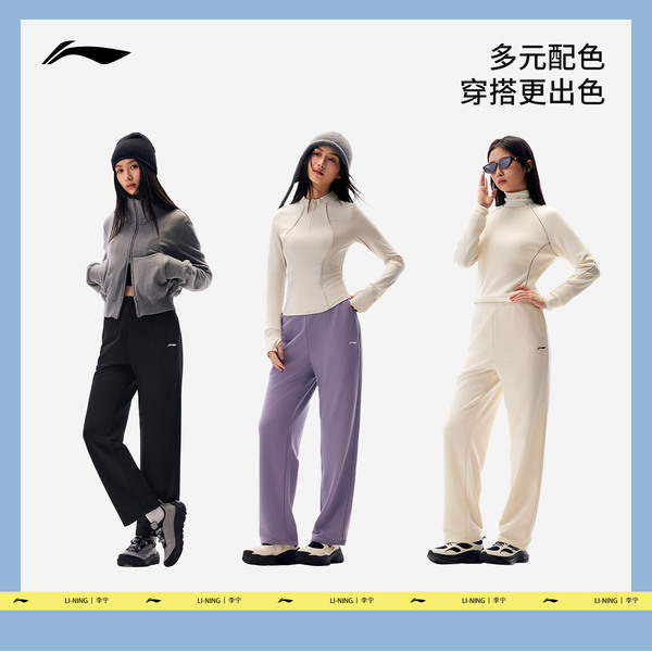 【叠加淘金币2.48元,凑200-25消费券到手93元左右】李宁卫裤女士新款健身跑步长裤反光窄直筒,亲肤舒适,柔弹不束缚。