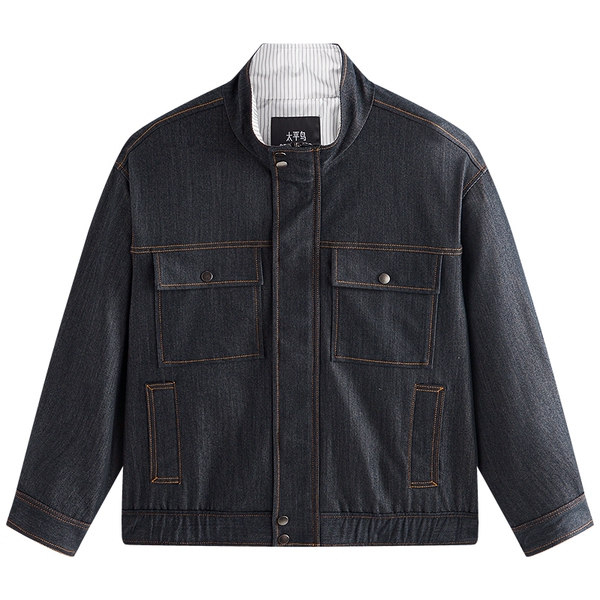 太平鸟男装 原牛色立领仿牛仔夹克工装潮流宽松茄克青年通勤外套