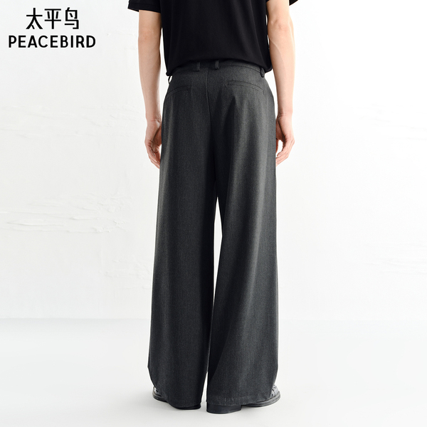【质感阔腿裤】太平鸟男装休闲裤26夏季新款薄直筒通勤腰带西裤
