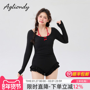 atlanticbeach度假泳衣女款夏连体裙式泡温泉泳装遮肉显瘦高级感